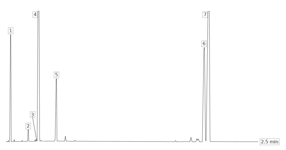 Injection: Split 230°C, 0.5μL, 1:250 Split Ratio.