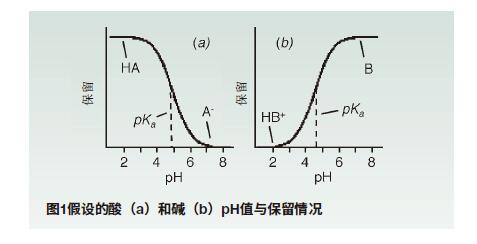 圖2b顯示了酸性、堿性和中性化合物pH值與保留情況的關系。