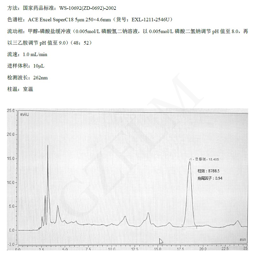 除此之外,我們可以提供多種固定相的色譜柱來滿足不同的分析需求,如ACE C18-AR色譜柱測定延胡索乙素,ACE NH2色譜柱測定苦參堿和氧化苦參堿。