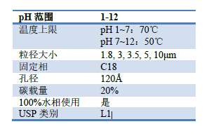 - 具有與常規色譜柱同樣標準的疏水性和親水性的良好平衡,避免市售 C18 雜化硅膠柱表現出的保留降低的問題