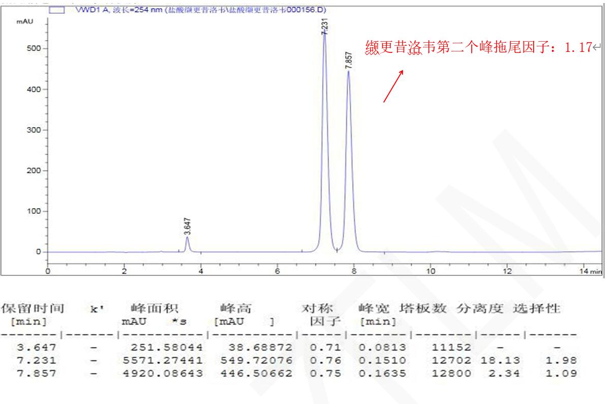 菲羅門液相色譜柱對(duì)鹽酸纈更昔洛韋的分析色譜柱 1:Titank C18 3μm 150×4.6 mm(貨號(hào):FMF-5559-EONU)