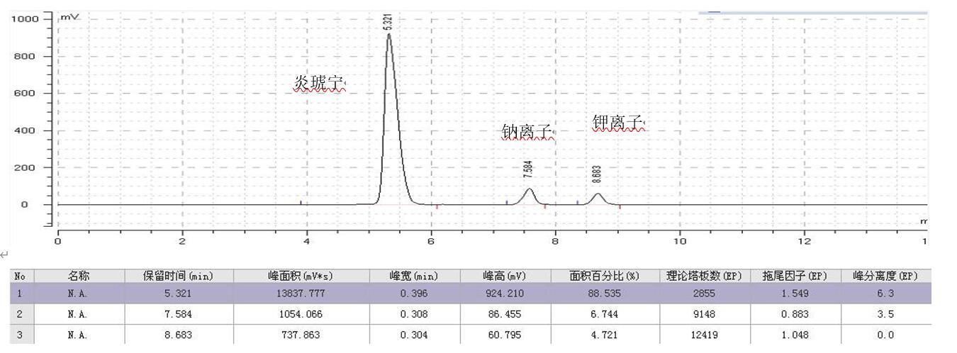 250*4.6mm)建立完成了炎琥寧中鈉鉀離子的含量檢測方法。為產品質量提供保證。