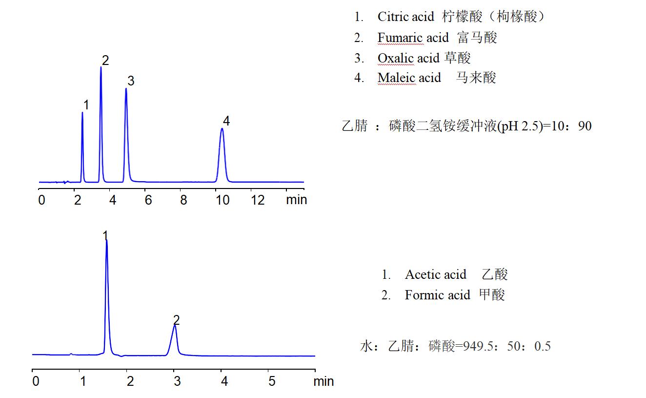 Comixsil HAX 分析草酸、檸檬酸、馬來酸、富馬酸、甲酸及乙酸等一元,二元, 三元有機(jī)酸