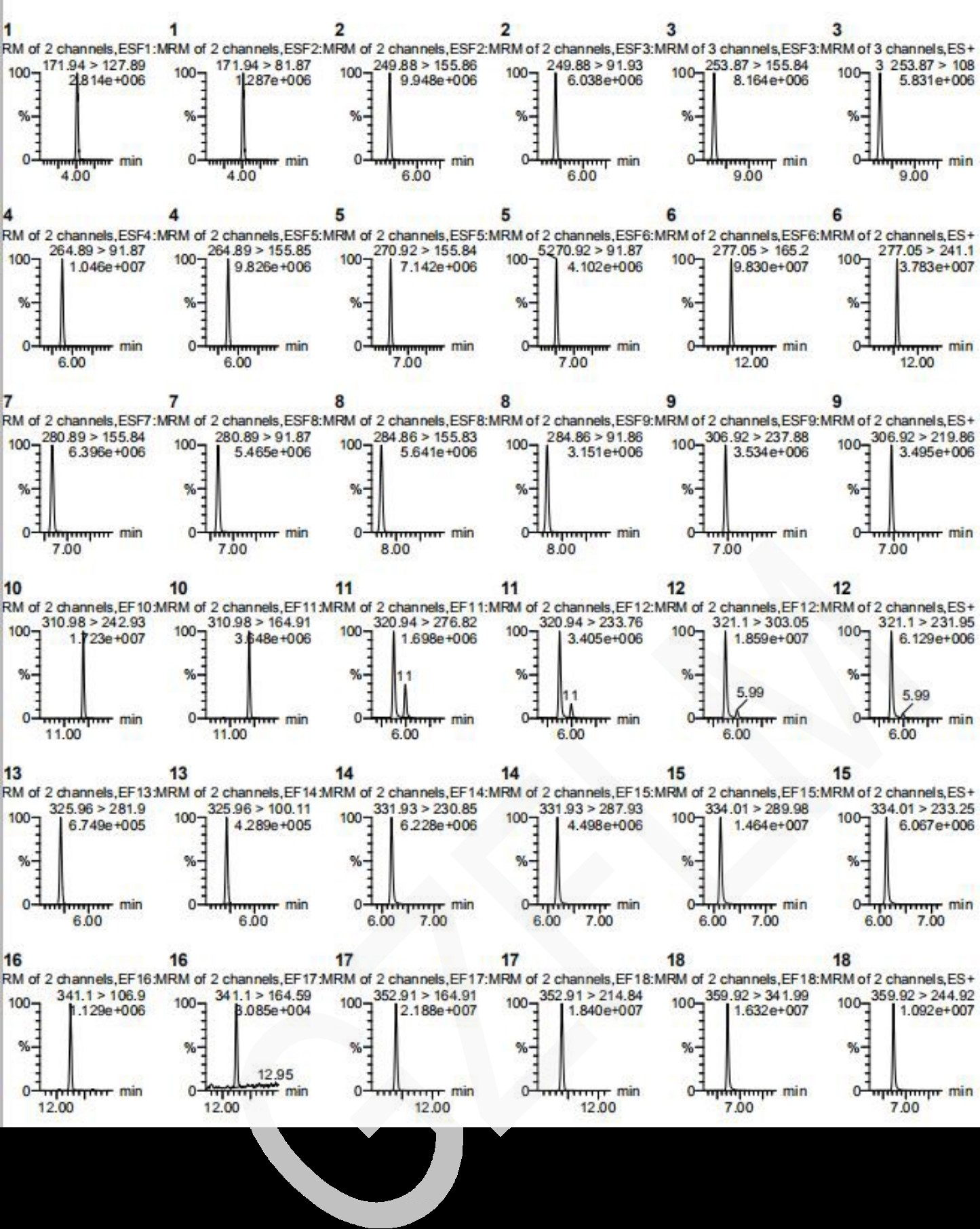 客戶評語:該款色譜柱峰型和分離度優秀,可滿足《化妝品安全技術規范》2015 年版中對 36 種抗感染組分檢驗方法的實驗要求。