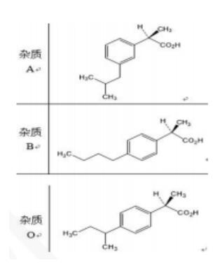 布洛芬是一種解熱鎮痛的非甾體抗炎藥,主要通過抑制外周神經環氧合酶-2的合成以減少前列腺素(致痛成分)和炎癥因子的產生,由此減輕組織充血和降低神經痛覺的敏感性,從而達到鎮痛的效果。在解熱方面,布洛芬主要通過作用于下丘腦的體溫調節中樞,降低其異常興奮型,調節神經來擴張皮膚血管,增加排汗量使皮膚散熱;同時穩定白細胞內溶酶體膜, 阻礙致熱原的釋放,達到降低體溫的效果。 布洛芬在合成制備過程中會產生多種雜質,典型的是間異丁基布洛芬,也被稱為布洛芬雜質A,是一種布洛芬的位置異構體。 布洛芬分子中含有一個手性中心,是一種手性藥物,有兩個互為鏡像的對映異構體,S(+)-布洛芬和R(-)-布洛芬(如圖2),二者在藥理方面具有明顯區別。國家開始有要求檢測對映異構體。 布洛芬的大多數色譜分析需求也來源于以上兩種原因。