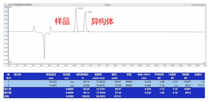 綜上所述,使用菲羅門手性柱對烏帕替尼中間體進行手性拆分是一個復(fù)雜但重要的過程。通過選擇合適的色譜柱、配置適當(dāng)?shù)牧鲃酉唷⑦M行專業(yè)的操作和數(shù)據(jù)分析,可以確保拆分過程的順利進行和拆分后得到的對映體的質(zhì)量。 |
