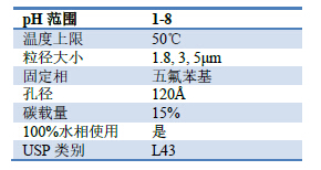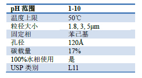 - 具有與常規色譜柱同樣標準的疏水性和親水性的良好平衡,避免市售 C18 雜化硅膠柱表現出的保留降低的問題