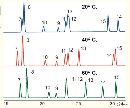 肽14和15的最適分離溫度為20°C,肽15先出峰。